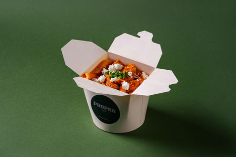 Proper Pasta is a locally based restaurant known for its fresh shrimp and homemade marinara dishes. The project involved developing a complete visual identity, including the logo, color scheme, and overall aesthetic of the brand. The client requested a look that was visually engaging yet easy on the eyes—something modern, clean, and elegant. The color palette was chosen to evoke freshness and comfort, while the logo was designed to be simple and memorable across signage, packaging, and digital platforms. The restaurant signage was created with internal LED lighting to ensure high visibility while maintaining an elegant aesthetic. The lighting design adds a contemporary touch, making the signage stand out especially during evening hours without overwhelming the overall look. To enhance street-level appeal, the storefront glass was designed with graphics that follow a clean and minimal brand direction.
